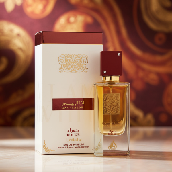 Ana Abiyedh Rouge was launched in 2016. Top notes are Nashi Pear, Kumquat and Bergamot; middle notes are Caramel and Geranium; base notes are Ambergris, Musk and Oakmoss.